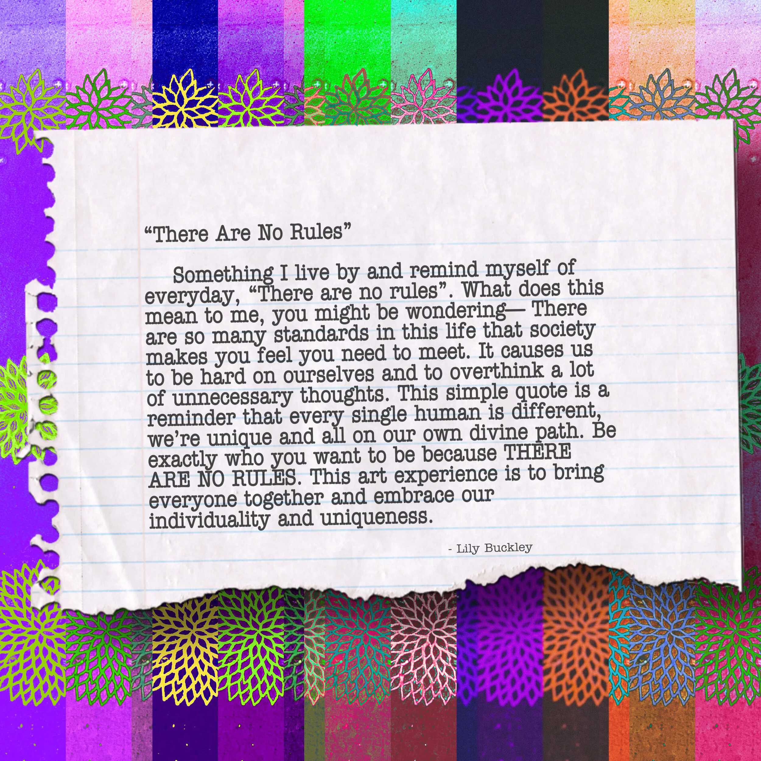 My inspiration comes from everyone and everything I experience daily. I never go into creating a piece with a concrete plan, as I have discovered having a plan unintentionally sets an expectation — and if not met, I end up being unsatisfied with the outcome. I go into painting with visions and just let my ideas flow. For me, expressing feelings in the moment is what captures the magic of my paintings and creations.