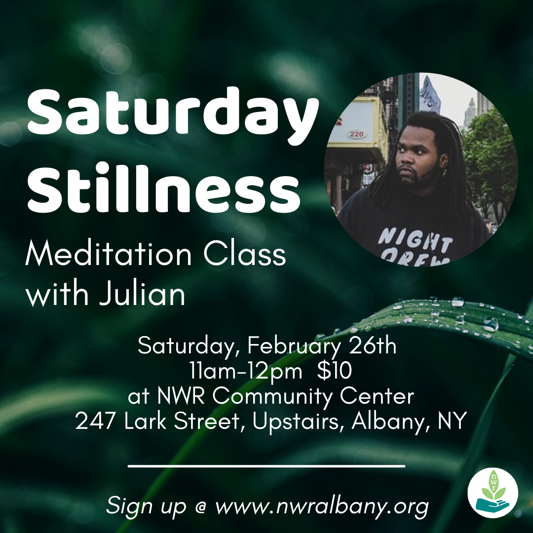 Back to All Events Saturday Stillness Saturday, February 26, 2022 11:00 AM 12:00 PM NWR Community Center 247 Lark Street, 2nd floor Albany, NY United States (map) Google Calendar ICS sign up now