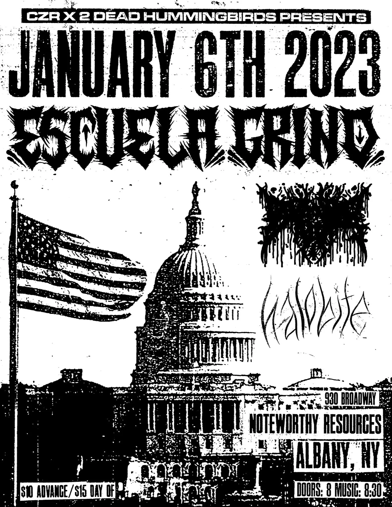 Escuela Grind plays in Albany for the first time in 3 years! At Noteworthy Resources, with support from MA’s Bonginator, and local 518 band Halo Bite. $15 at the door